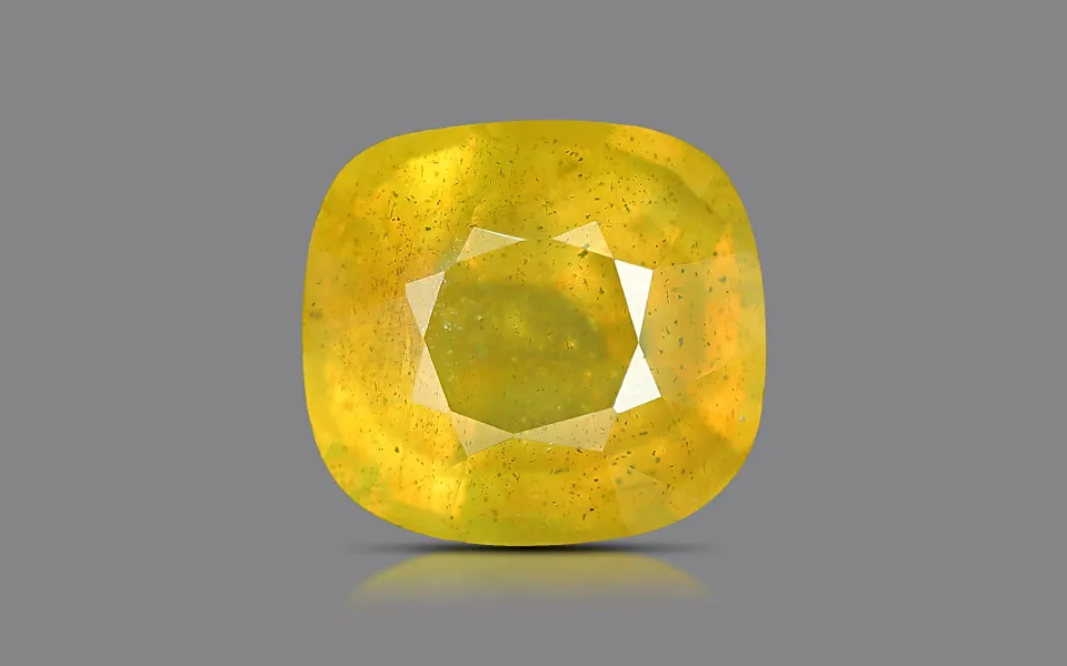 Our Yellow Sapphire Gemstone 5.5 Carat – Certified Natural Bangkok Pukhraj with Rich Color is a mixed-cut gemstone, handpicked for its vivid golden-yellow color, brilliance, and clarity. Heat-treated to achieve near-perfect color and clarity, this gemstone is perfect for astrology, jewellery, and spiritual purposes.